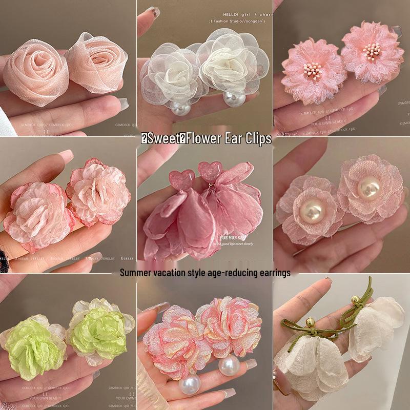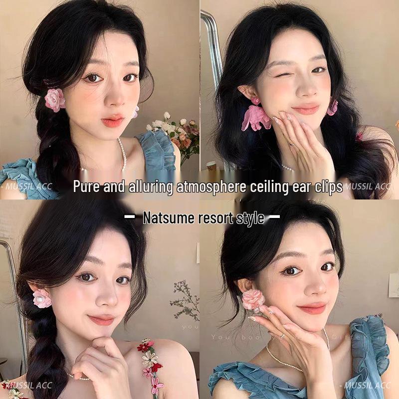 2025 Новые Стильные Клипсы-Серьги с Цветами для Женщин - Летний Нишевый Дизайн, Высококлассные Украшения для Ушей без Прокола