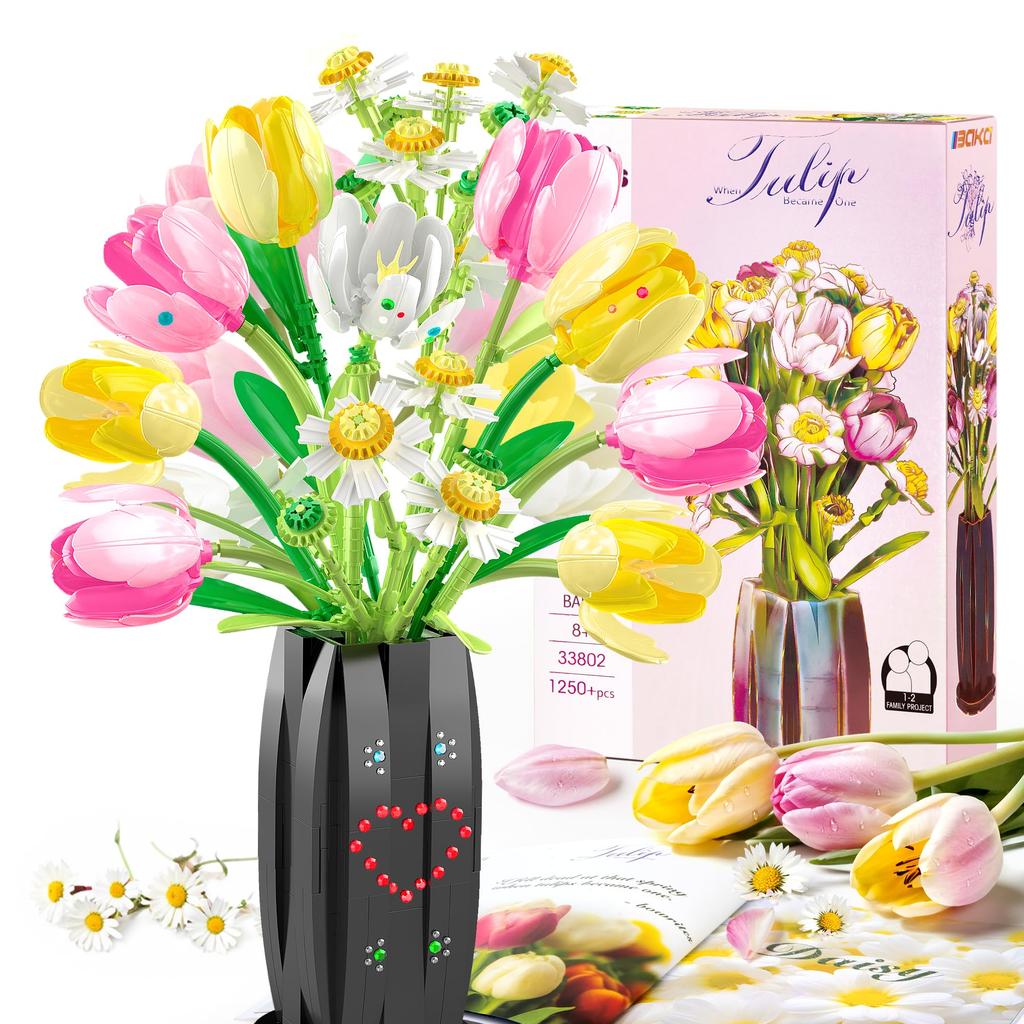 Блоки в виде тюльпанов, Цветочный блок, Конструктор для детей и мальчиков, Подарок на годовщину, Игрушка, Набор, Блоки, Взрослые, Девочки, День матери, День святого Валентина,