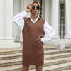 Длинный однотонный жилет с V-образным вырезом, жилет, вязаное платье-свитер для женщин на осень и зиму