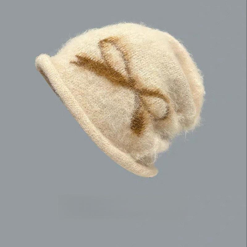 Осенне-зимние жаккардовые шапки-бантики с начесом для женщин, теплые шарфы для защиты ушей, холодные шапки, модные вязаные шапки в корейском стиле