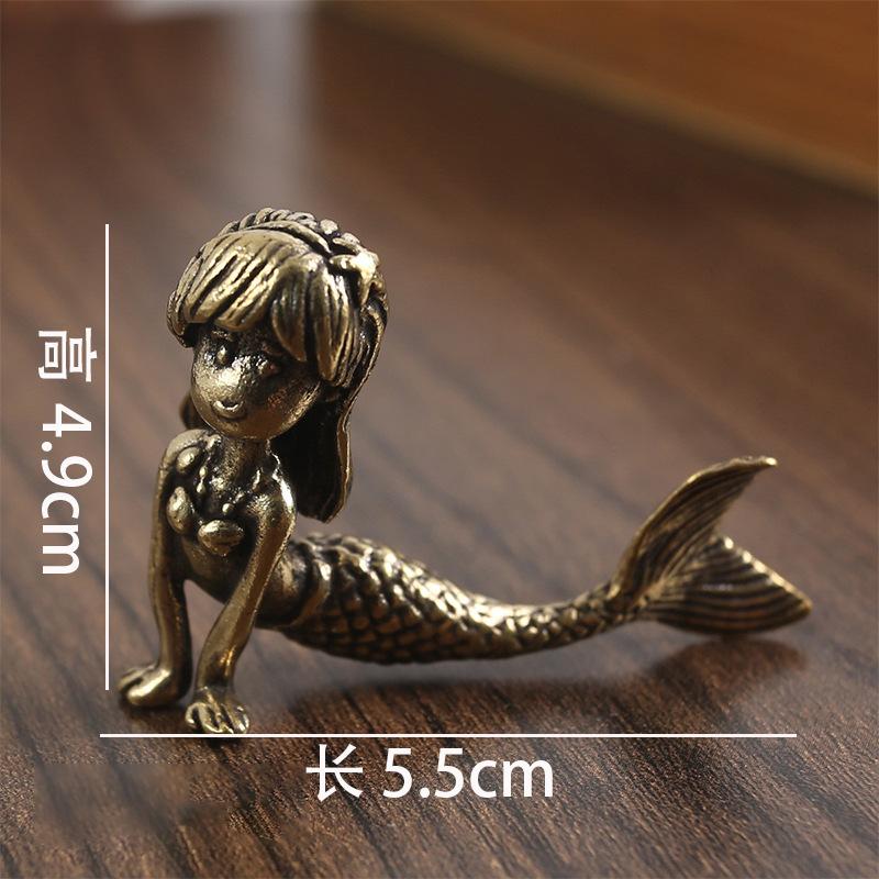 Тан Тэн русалка ретро латунная фигурка морская дочь состаренная чистая медь настольное украшение поделки
