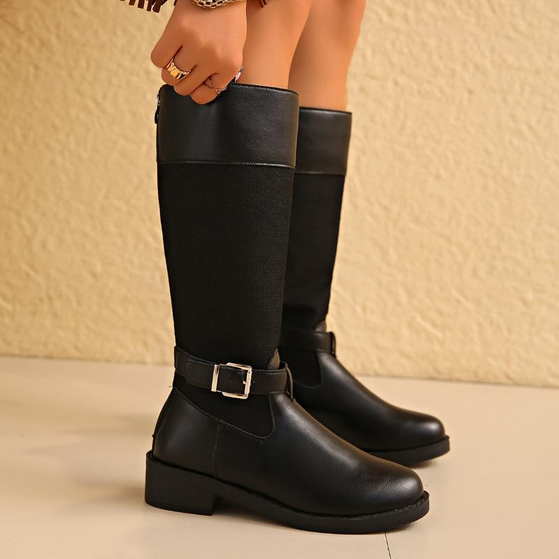 Обувь нового стиля: Ботильоны на толстом каблуке, на низком каблуке, высокие, большого размера с круглым носком и пряжкой-ремнем, женская обувь