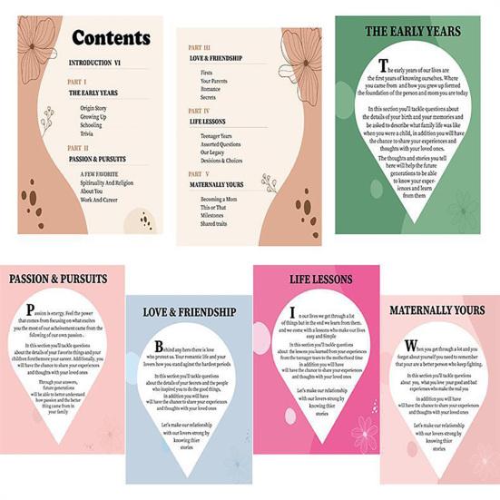 Сохраняйте и лелейте сущность матери с помощью дневника и истории мамы. Этот душевный подарок идеально подойдет на День матери, дни рождения или любой другой особый случай.. Этот дневник, содержащий 100 вопросов, заставляющих задуматься, превращает воспоминания в вечное наследие.. От детских сказок до жизненных уроков — каждый вопрос предоставляет мамам уникальную возможность поразмышлять о своем пути и поделиться своей мудростью.