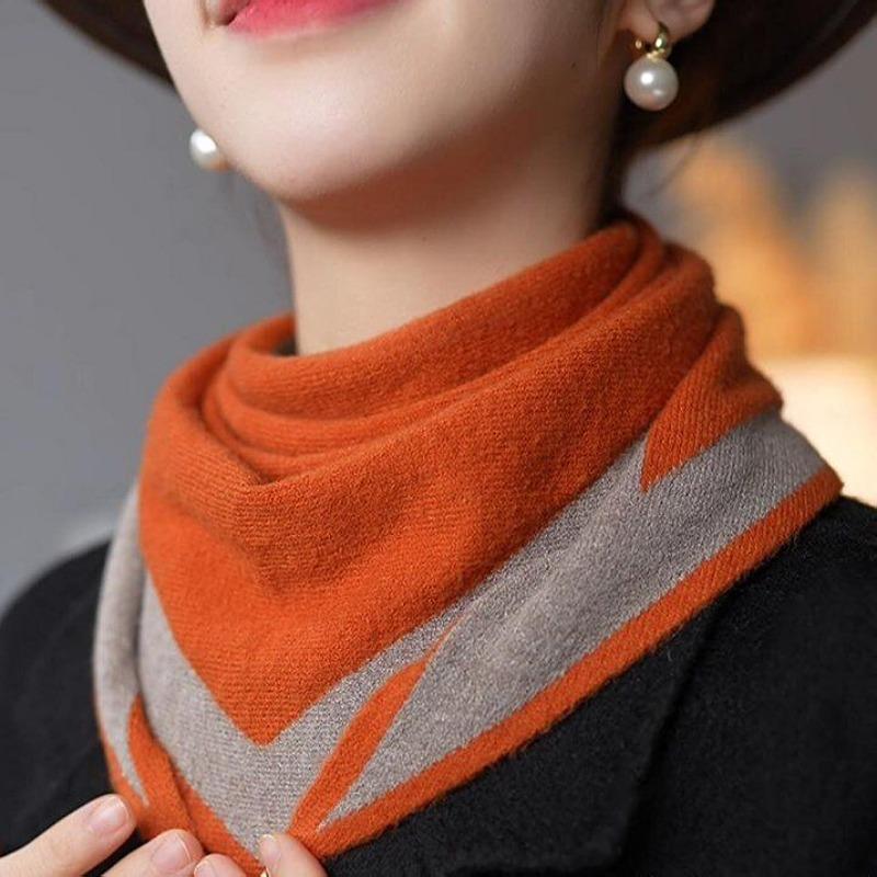 Реверсивный однотонный шарф Зимний толстый треугольный платок Двусторонний теплый универсальный вязаный шарф Женский