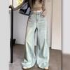 Ретро джинсы с высокой посадкой, вареные, женские летние свободные и тонкие брюки в пол, прямые брюки, брюки клеш, длинные брюки