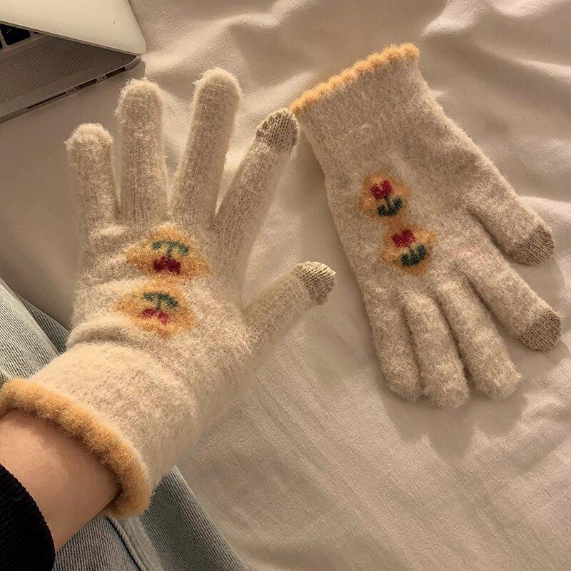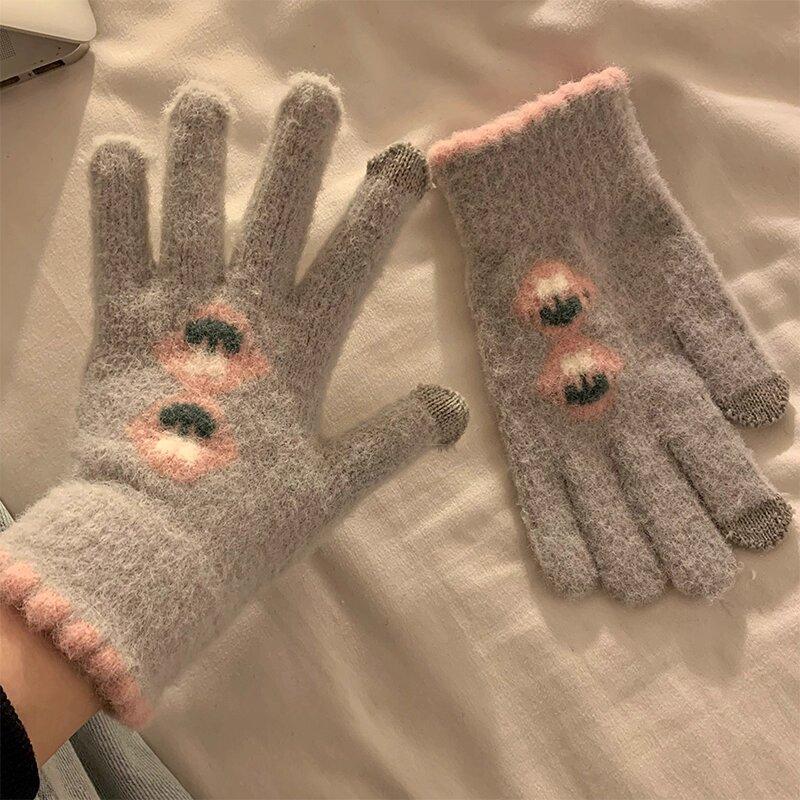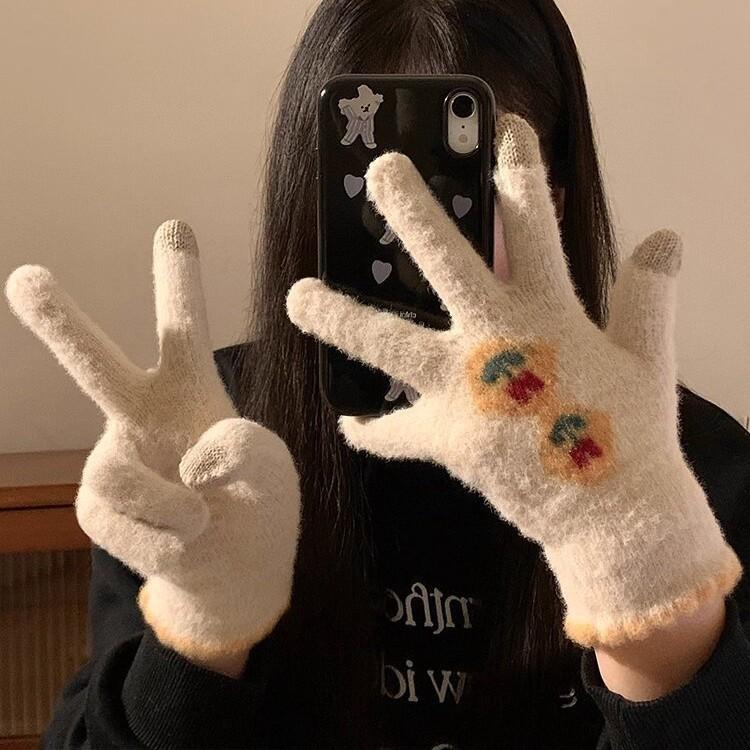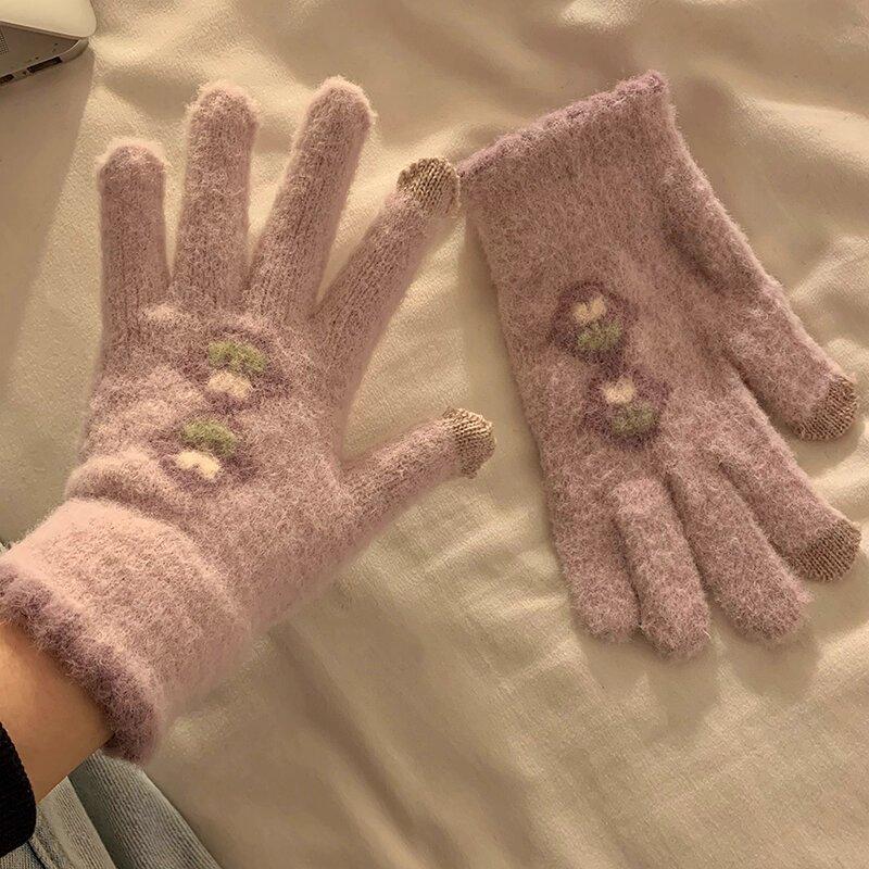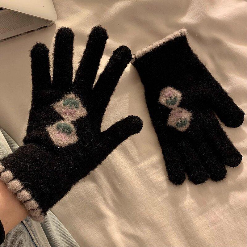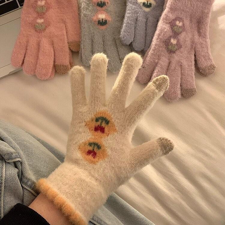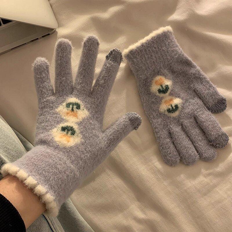Вязаные перчатки с пятью пальцами для женщин на зиму Теплые и бархатистые Утолщенные Студенческие Перчатки для защиты от холода и мороза для езды на велосипеде