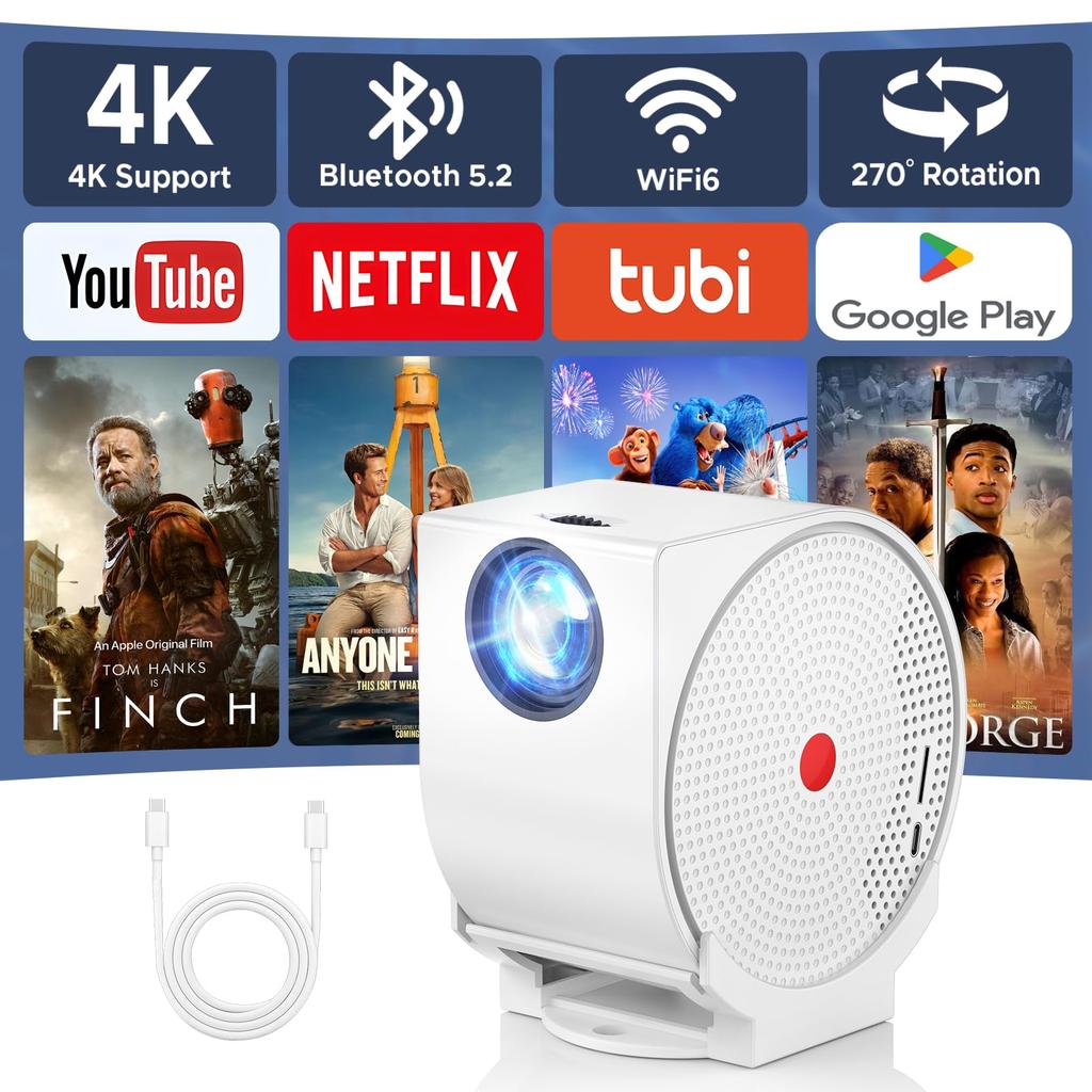 [Кинематографический опыт, которым вы будете наслаждаться всю жизнь] Этот портативный мини-проектор, P4, оснащен Wi-Fi и Bluetooth, портами HDMI и USB, что позволяет легко подключаться к смартфонам, устройствам Android, ноутбукам, ПК, ТВ-приставкам, USB-накопителям и даже PS5.. Благодаря встроенному приложению и динамикам, он легко сопрягается с доступными ТВ-приставками и ноутбуками для бесперебойной потоковой передачи Netflix, Amazon Prime, YouTube и многого другого.. Это также делает его идеальным подарком для особых случаев, таких как дни рождения, День матери, День отца, День защиты детей и Рождество. Это наверняка удивит и порадует любого, кто это получит!