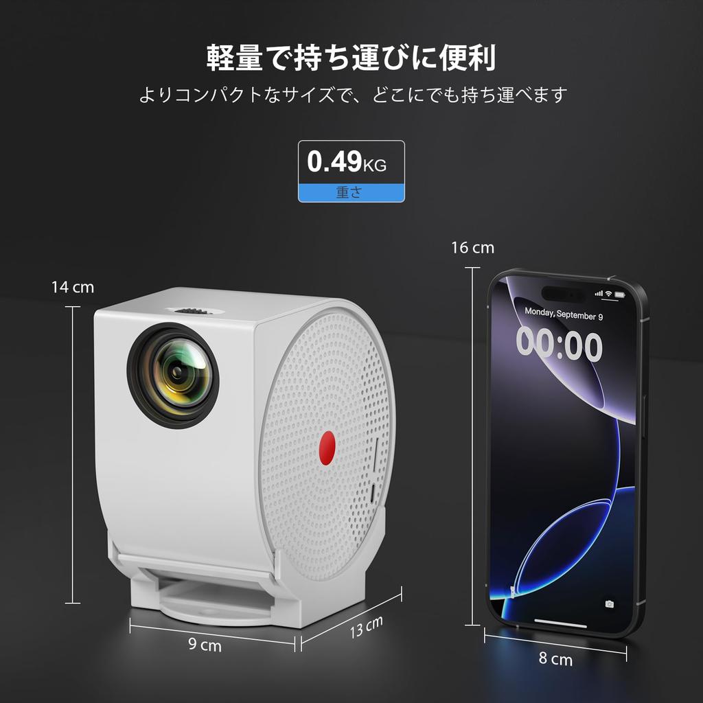 [Портативный проектор с подставкой и вертикальным вращением на 270°] Мини-проектор EGOBAS весит всего 490 г и имеет размеры 14 x 13 x 9 см, он достаточно компактный, чтобы поместиться в одной руке и легко поместиться в рюкзак. Проектор имеет конструкцию с вертикальным вращением на 270°, что позволяет гибко регулировать угол проекции от пола до стены или потолка.. Он также поставляется со съемной подставкой с отверстием для крючка, так что вы можете повесить его на стену или в любом месте, где вам нравится.. (уведомление: Крючок в комплект не входит.)