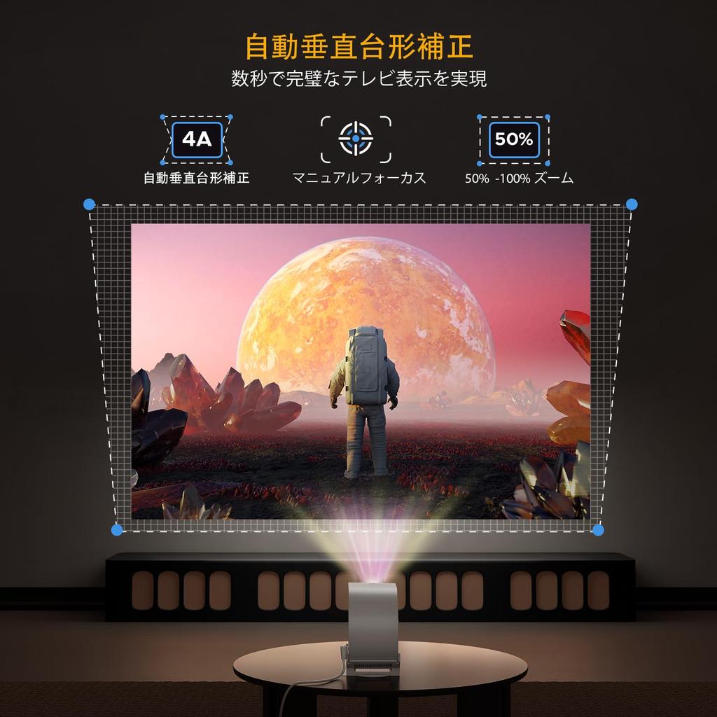 [Автоматическая вертикальная коррекция трапецеидальных искажений + Ручная регулировка фокусировки] Смарт-проектор EGOBAS (совместимый со встроенным приложением) поддерживает размеры проекции от 27 до 200 дюймов. Этот проектор с поддержкой Wi-Fi и Bluetooth оснащен функцией автоматической вертикальной коррекции трапецеидальных искажений, которая быстро устраняет наклон и выравнивает изображение за секунды.. Также доступна ручная регулировка фокуса, что исключает необходимость в инструментах и позволяет легко управлять одной рукой для получения четких и ясных изображений.. Он также поддерживает собственное разрешение HD 720p и вход 4K/1080p.. Благодаря яркости 400 ANSI люмен и высокой 10 000:1 коэффициент контрастности, он обеспечивает четкое, ясное изображение.