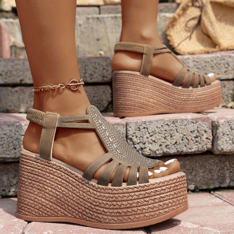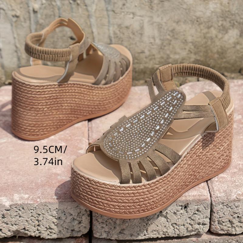 Женские сандалии на платформе слипоны с толстой амортизирующей подошвой - туфли с открытым носком на высоком каблуке, дышащее синтетическое покрытие и нескользящая резиновая подошва для повседневной носки