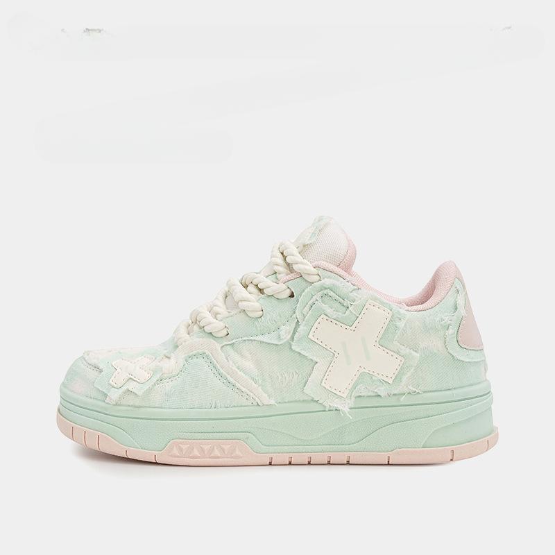 Кремово-зеленые летние новые кроссовки Bread, женские кроссовки с толстой подошвой, износостойкие, женские повседневные туфли Broken Edge Personality Flat