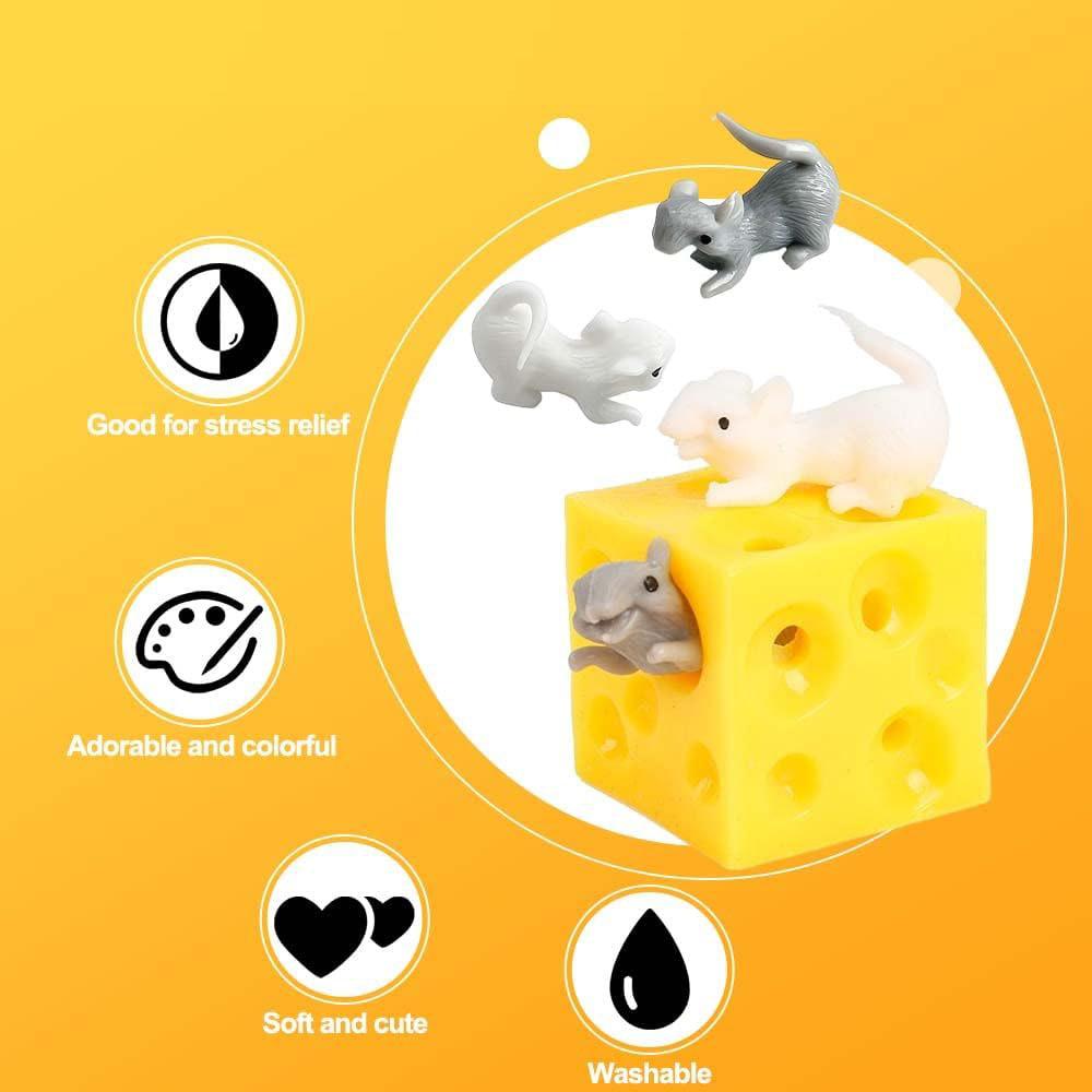 Сквиши Сыр Резина Имитация Сыра с 2 Мини-Мышами Стресс Тревога Сенсорный Р