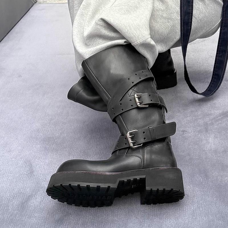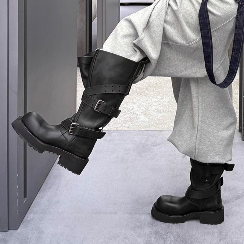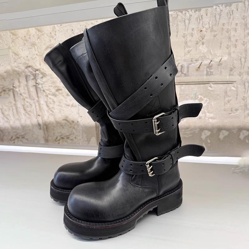 2025 Новые ботинки-локомотивы Diablo, длинные ботинки, пряжка ремня, ботинки Мартин, панк-ботинки, женские