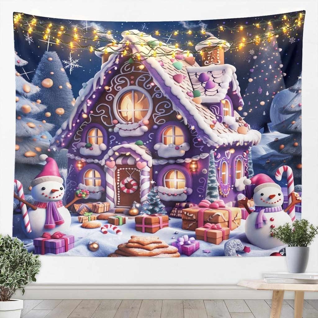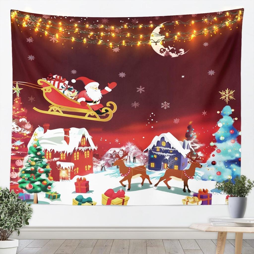 Рождественский гобелен Дед Мороз Снежинка Новогодний фон Настенное украшение Камин Носки Подарки Подвесная ткань