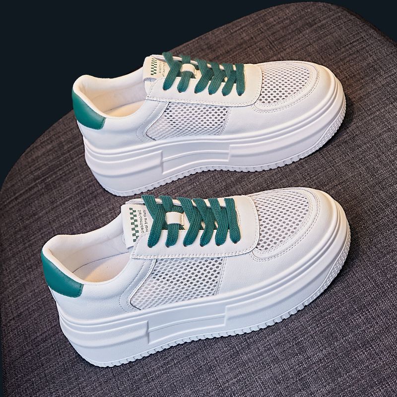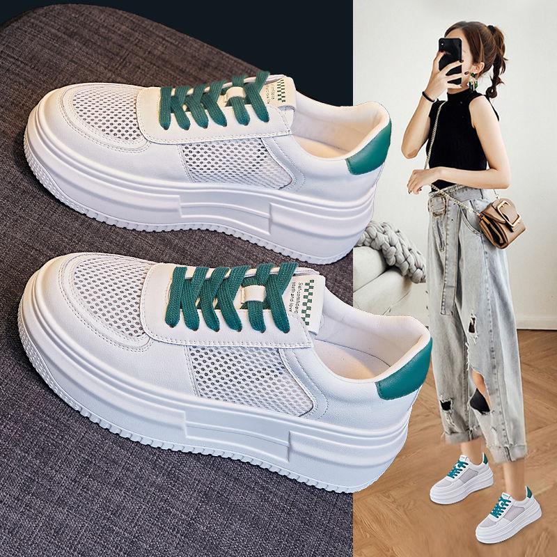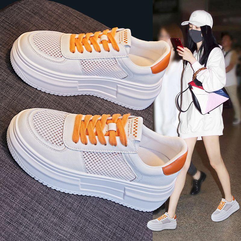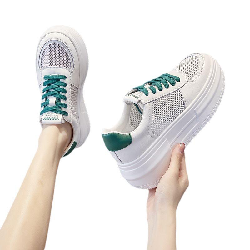 Женские белые туфли, новые летние дышащие сетчатые универсальные спортивные повседневные туфли на толстой подошве, тонкие женские туфли