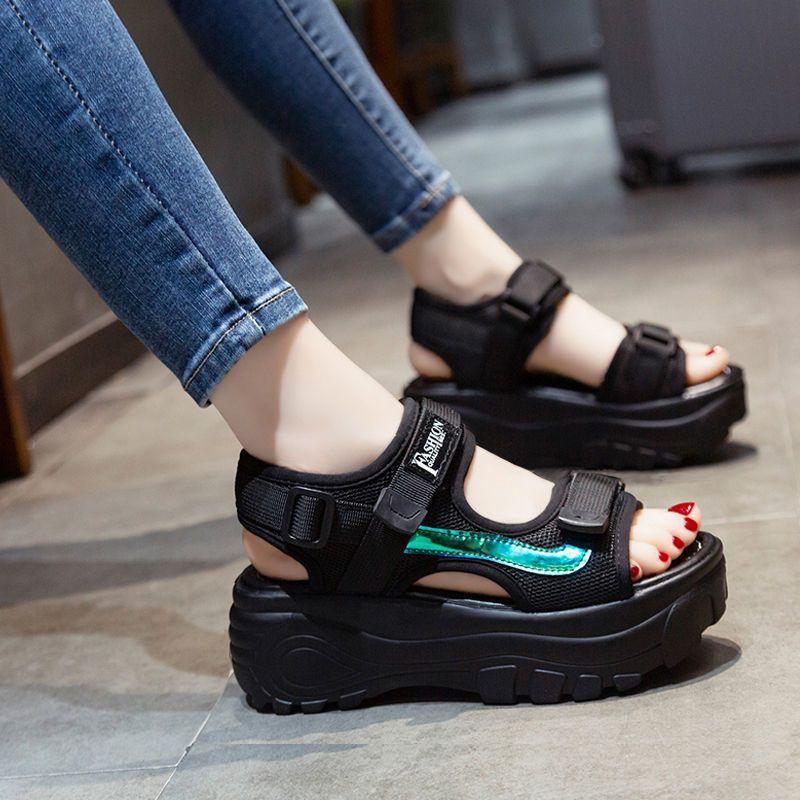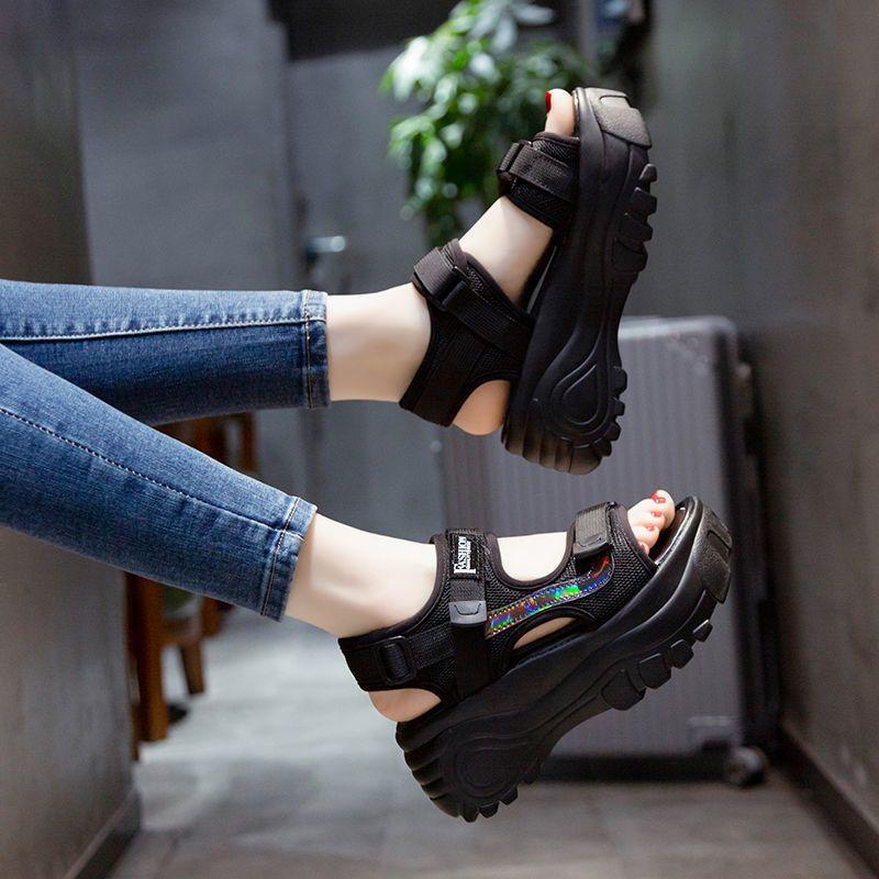 Женские спортивные сандалии на толстой подошве, новогодние, плоские, универсальные, не утомляющие ноги, летняя повседневная пляжная обувь