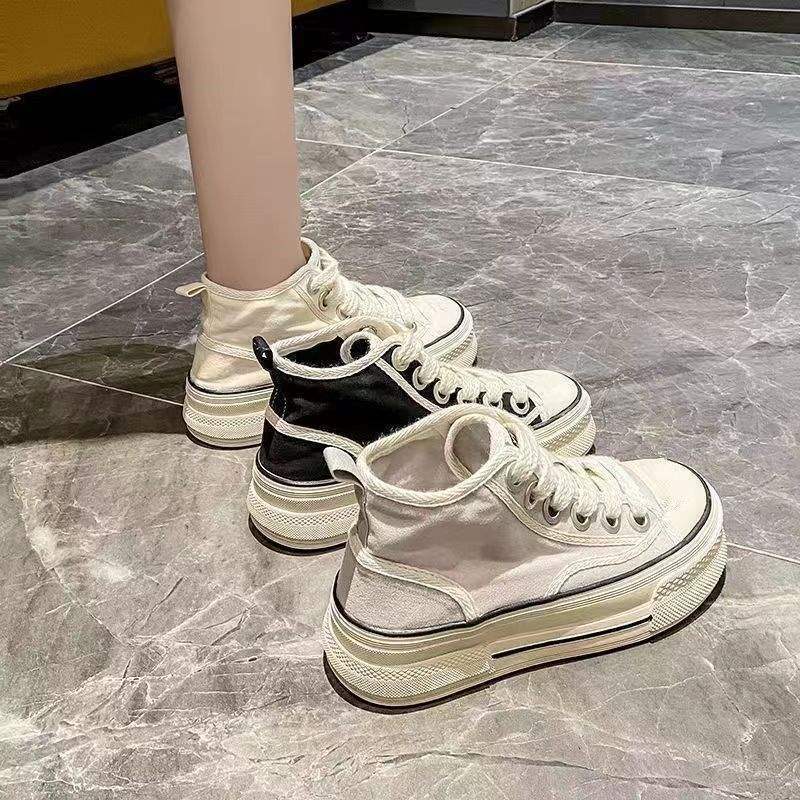Обувь женская 2025 весна и осень тонкие высокие кеды маленькие белые туфли платформа холщовые туфли женские ins нишевые универсальные повседневные