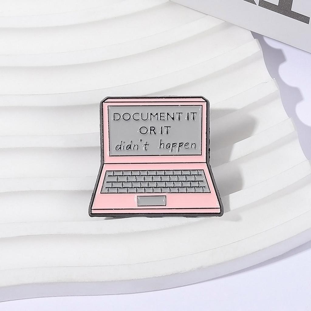 Розовая брошь в форме ноутбука для уникального стиля и универсального ношения Значок "Задокументируй это, или этого не было" Модный аксессуар