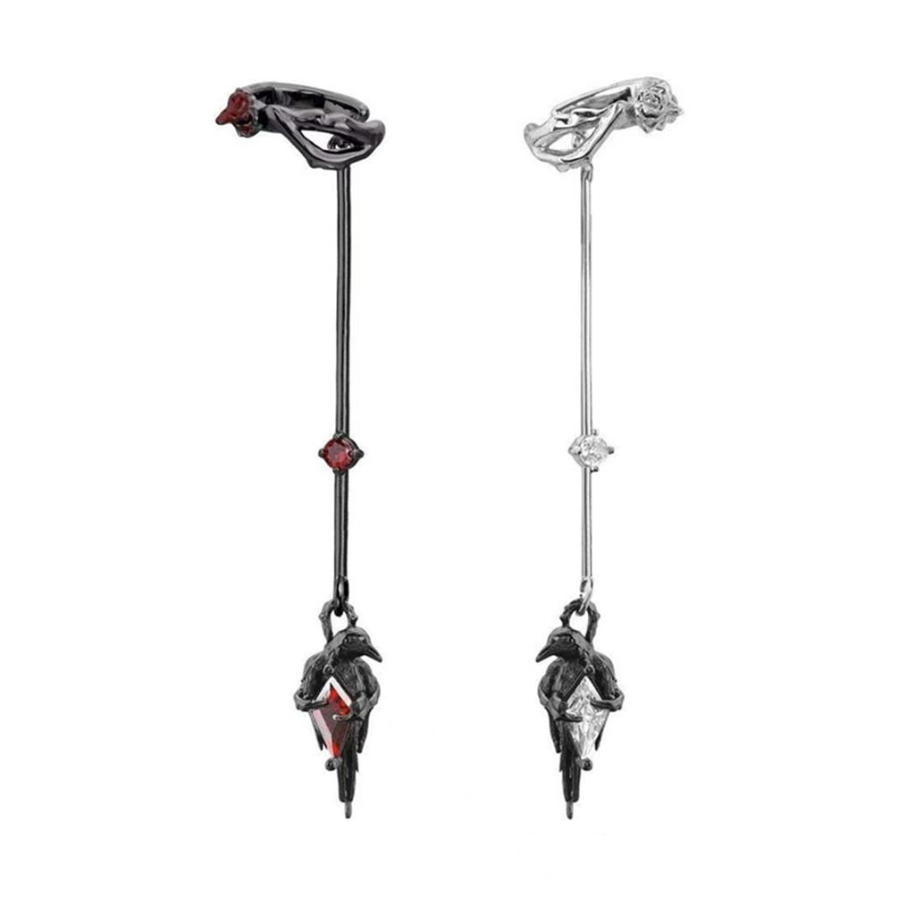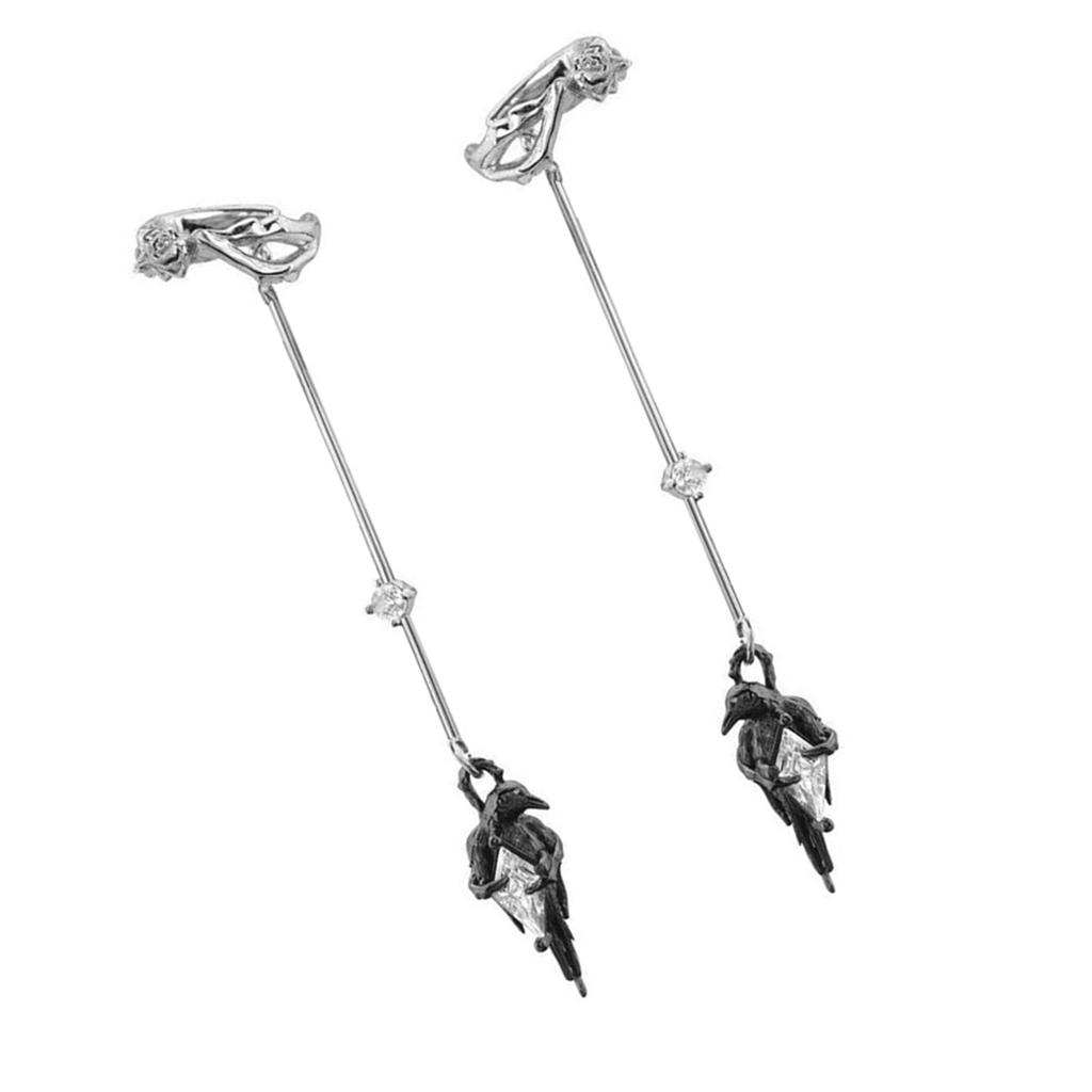 Готический кафф на ухо без пирсинга для мужчин и женщин, вдохновленный воронами, крючок для уха с подвеской и деталями в виде роз, сплав, темные украшения