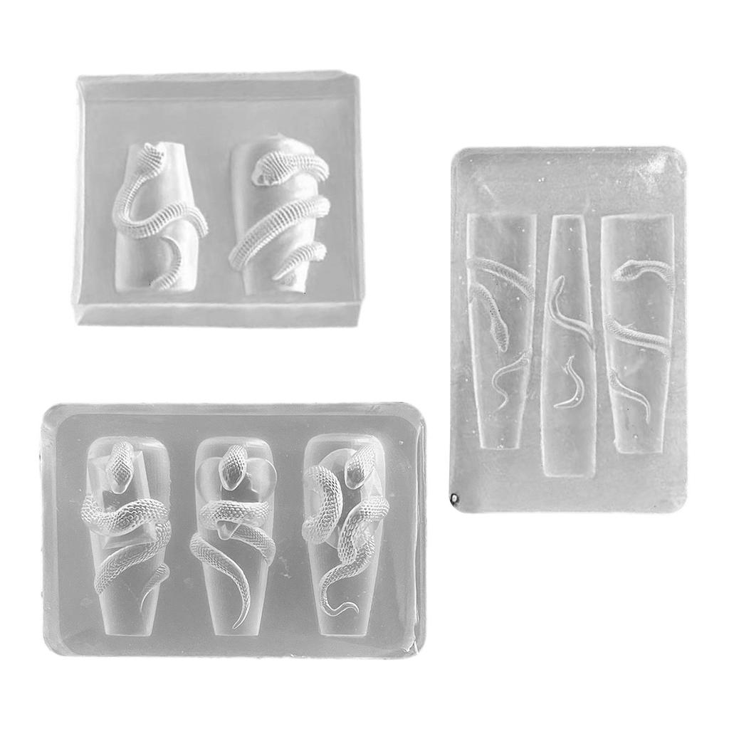 Набор из 3 многоразовых 3D силиконовых форм для нейл-арта со сложным дизайном змеи, инструменты для нейл-арта для DIY маникюрных аксессуаров