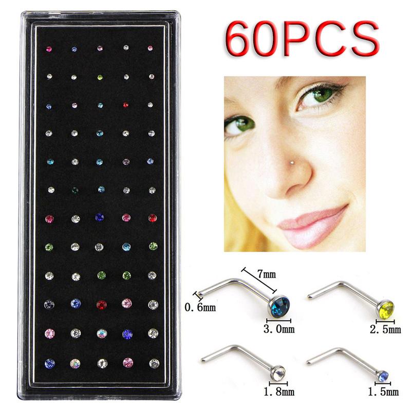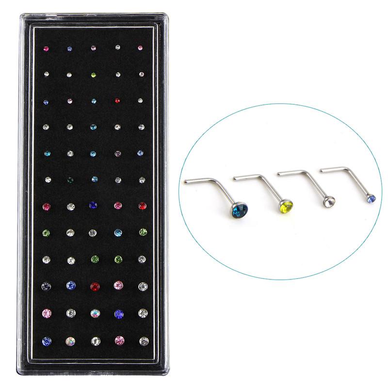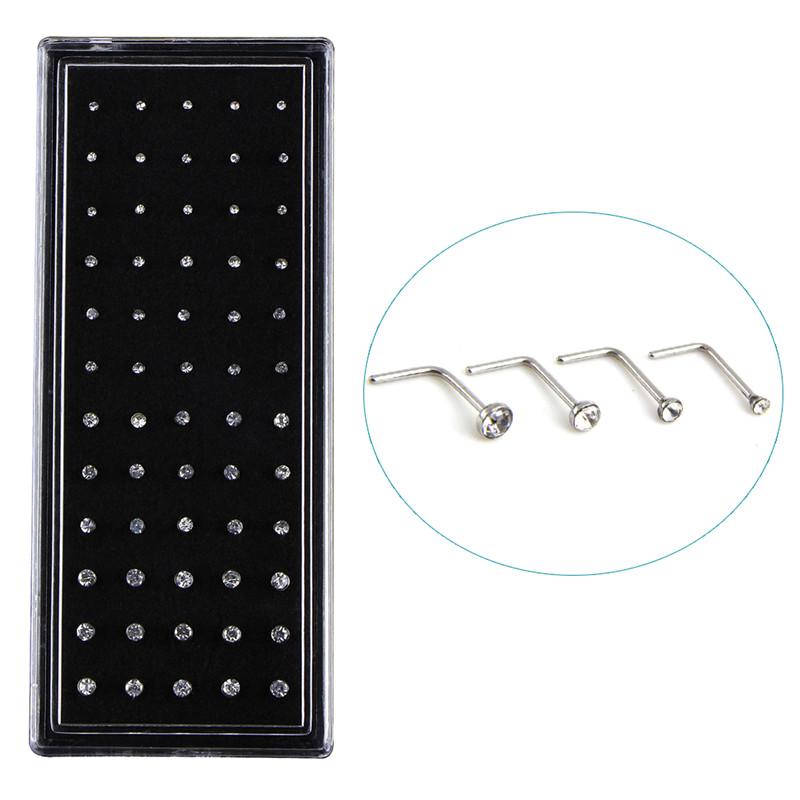 60 шт. L-образные кольца для носа, костяные гвоздики, стальные пирсинг-украшения