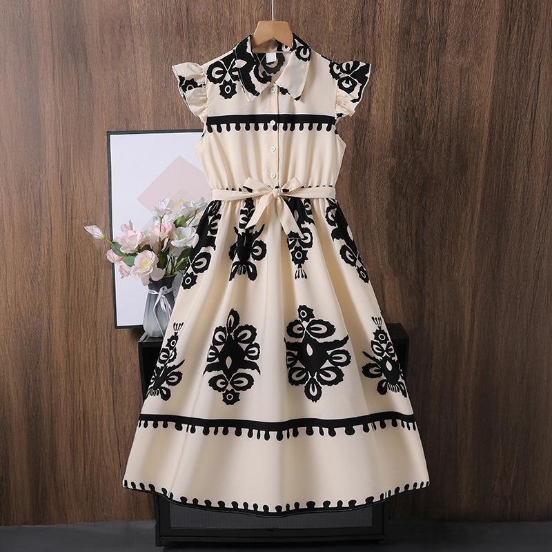 Платье для девочек Детская одежда Летняя Новая Мода С принтом Рукава-крылышки Приталенное Элегантное Платье-рубашка