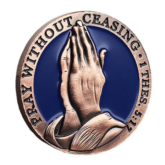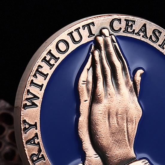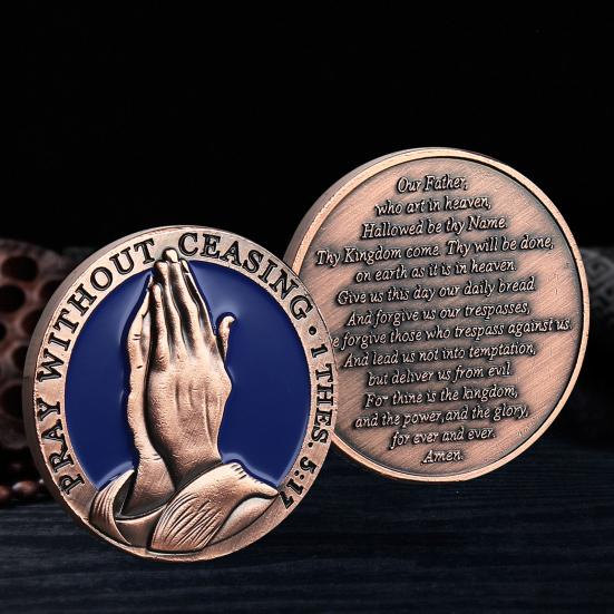 Выгравированные значимые стихи из Библии: С изображением молящихся рук и текста «Непрестанно молитесь» из 1 Фессалоникийцам 5:17, эта монета «Отче наш» воплощает в себе суть духовной преданности. Пусть его присутствие вдохновляет и поднимает ваш дух в течение всего дня.