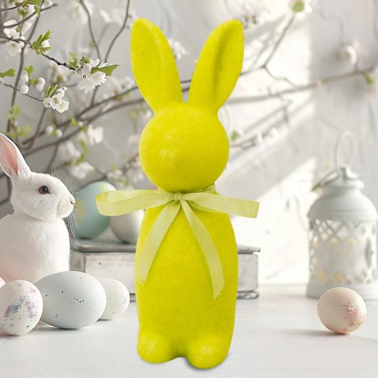 Очаровательный дизайн пасхального кролика: Украсьте свой обеденный стол этим флокированным украшением в виде пасхального кролика, привнеся игривую и праздничную атмосферу в вашу праздничную обстановку благодаря своему очаровательному дизайну.