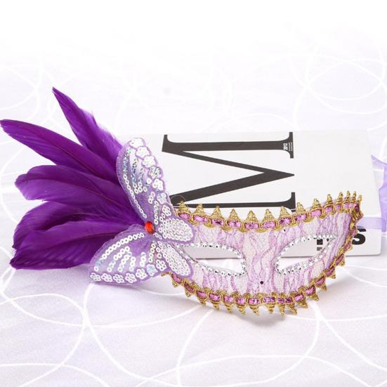 Изысканный перьевой дизайн: Подчеркните свой стиль с помощью изящных бабочек и перьев, украшающих эту маскарадную маску, добавив нотку элегантности и таинственности любому наряду.