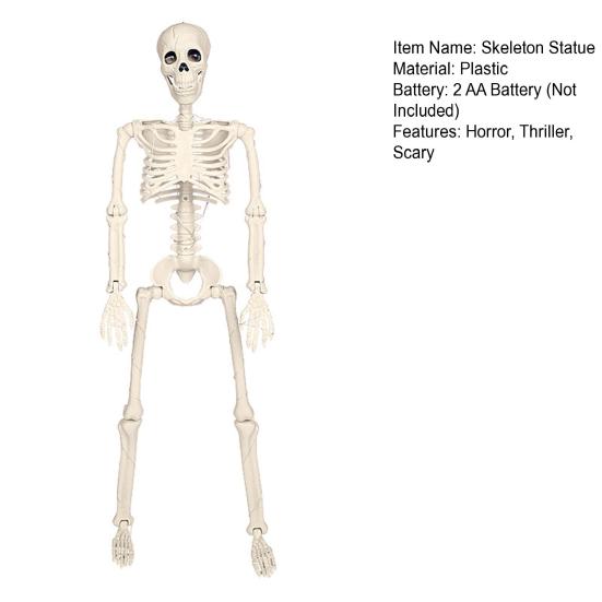 Украсьте свой декор на Хэллоуин с помощью этой реалистичной статуи скелета.. Этот скелет, изготовленный с подвижными суставами, включая плечевые, локтевые и запястные, можно без труда придавать различным положениям.. Изготовлен из высококачественного твердого пластика и окрашен в цвета, имитирующие кости. Он может похвастаться реалистичной грудью и прочной конструкцией для длительного использования.. Этот большой скелет высотой 90 см идеально подойдет для создания жуткой атмосферы в вашем доме, офисе, школе, доме с привидениями или в любом месте вечеринки по случаю Хэллоуина..