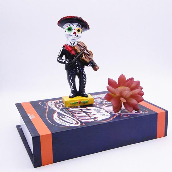 Уникальный дизайн на Хэллоуин: Эта статуэтка скелетов, изготовленная из высококачественной смолы, отличается уникальным дизайном черепа на Хэллоуин, переплетенного с музыкальными инструментами, добавляя игривый и отличительный штрих любому пространству.
