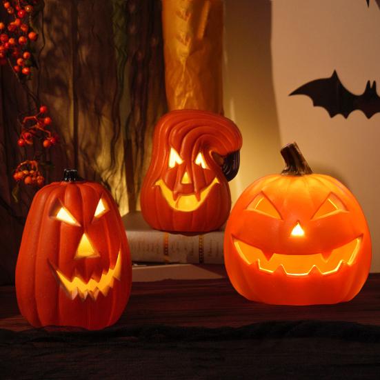 Хэллоуинская тыквенная лампа Жуткая светящаяся тыквенная фигурка Светящаяся декоративная тыква со светодиодной подсветкой для дома с привидениями Хэллоуин Домашний сад Декор
