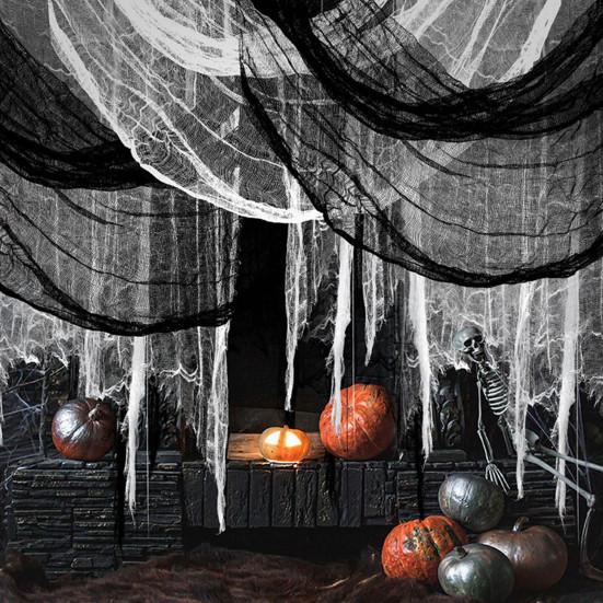Жуткий домашний декор: Поднимите атмосферу Хэллоуина на новый уровень с этой жуткой тканью, драпированной на окнах, шторах, верандах, столах или потолках.. Превратите свое пространство в обстановку дома с привидениями, которая заставит содрогнуться от страха ваших гостей и прохожих.