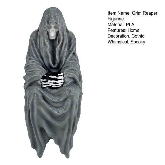 Таинственное готическое очарование: Эта фигурка мрачного жнеца, изготовленная из прочного материала PLA, воплощает в себе замысловатые детали и темную привлекательность, идеально подходит для добавления сверхъестественного штриха в ваш сад, дом или офис.