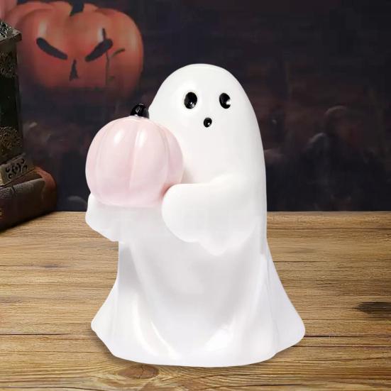 Хэллоуин Фигурка Привидения Милое Маленькое Привидение, Держащее Летучую Мышь/Статуэтка Розовой Тыквы, Полимерная Настольная Фигурка для Книжной Полки, Спальни, Домашнего Декора