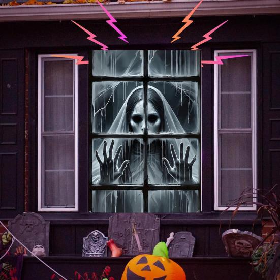Улучшение жуткой атмосферы: Превратите свое пространство в леденящее душу зрелище с этой призрачной наклейкой на окно, идеально подходящей для того, чтобы напугать гостей и любителей сладостей, что делает ее незаменимым дополнением для создания незабываемой атмосферы Хэллоуина.
