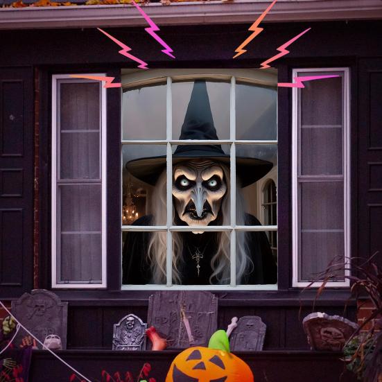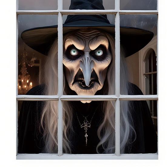 Украсьте свой хэллоуинский декор этим оконным покрытием. Изготовленное из прочного полиэстера, это жуткое украшение подходит как для использования в помещении, так и на улице.. Призрачная фигура отличается выпученными глазами, крючковатым носом и нервным выражением лица, что делает ее леденящим душу центральным элементом для экспозиций домов с привидениями.