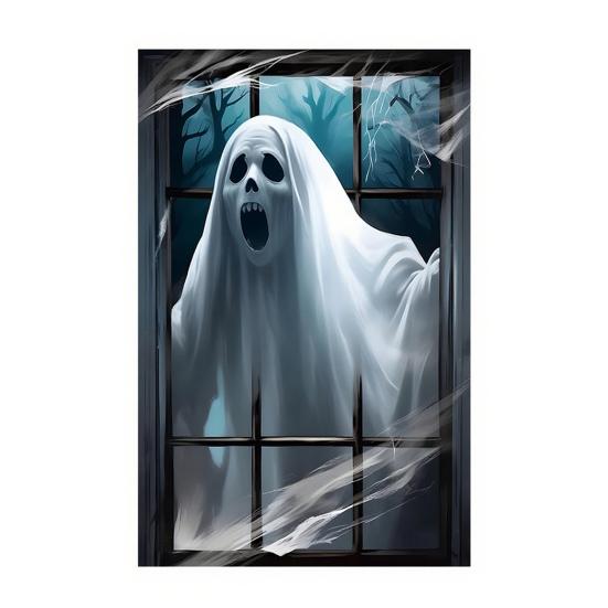 Универсальное украшение на Хэллоуин: Идеальный для домов с привидениями, жутких комнатных экспозиций, украшений для крыльца на Хэллоуин или жутких оконных сцен, этот призрачный статический стикер усиливает фактор страха вашего сезонного декора своим призрачным дизайном.