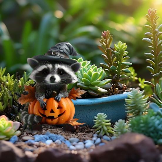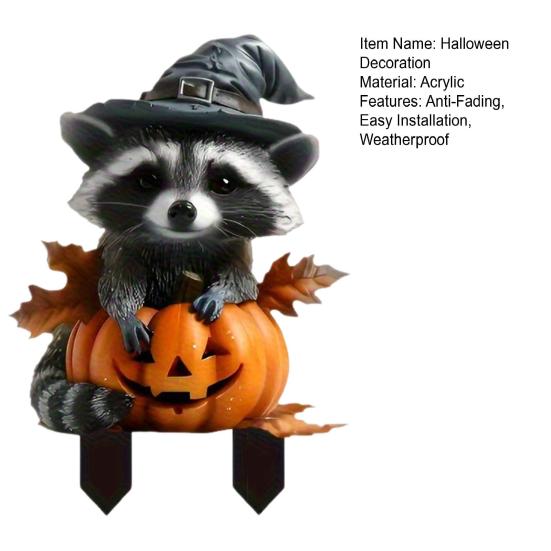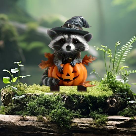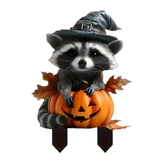 Хэллоуин Енот Садовый Колышек Знак Енот и Тыква с Колышками Осенний Декоративный Колышек для Дома Двора Сада Патио Украшение