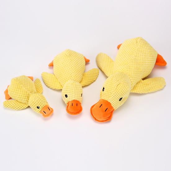 Универсальные варианты игры: Эта плюшевая желтая утка, игрушка для собаки, предлагает множество функций, идеально подходит для перетягивания, кусания и интерактивных игровых сессий.. Подходит для больших, средних и маленьких собак, служит компаньоном во время игр и уютной подушкой для сна питомца, способствуя близости и саморазвлечению.