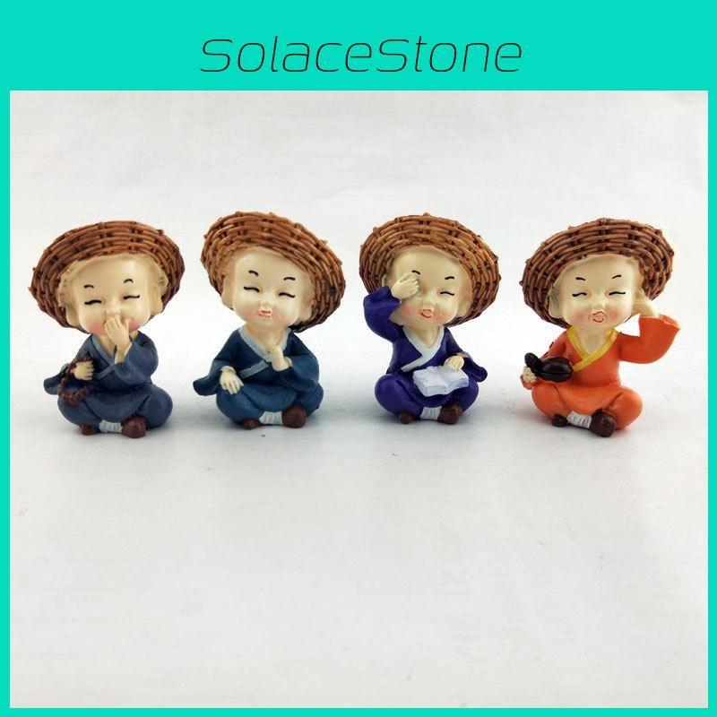4 шт. Милая соломенная шляпа, маленький монах, мини-набор украшений для сада и декора автомобиля