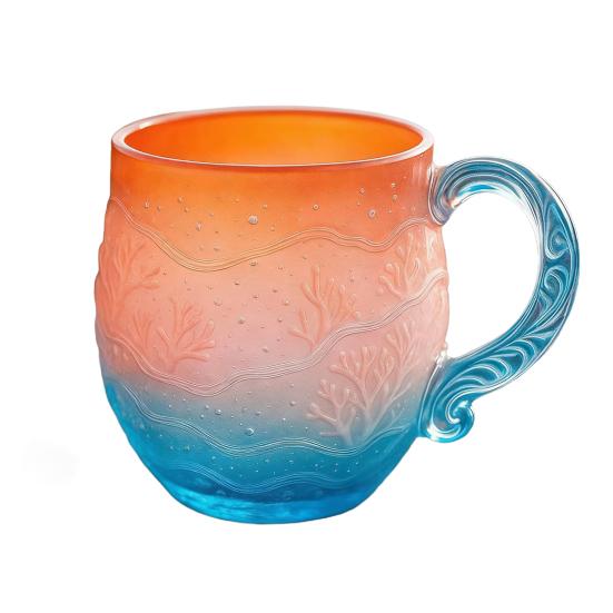 Кружка стеклянная «Океанский закат» Чашка для кофе в морском стиле с ручкой в виде волны Градиентные цвета Чашка для чая для горячих и холодных напитков