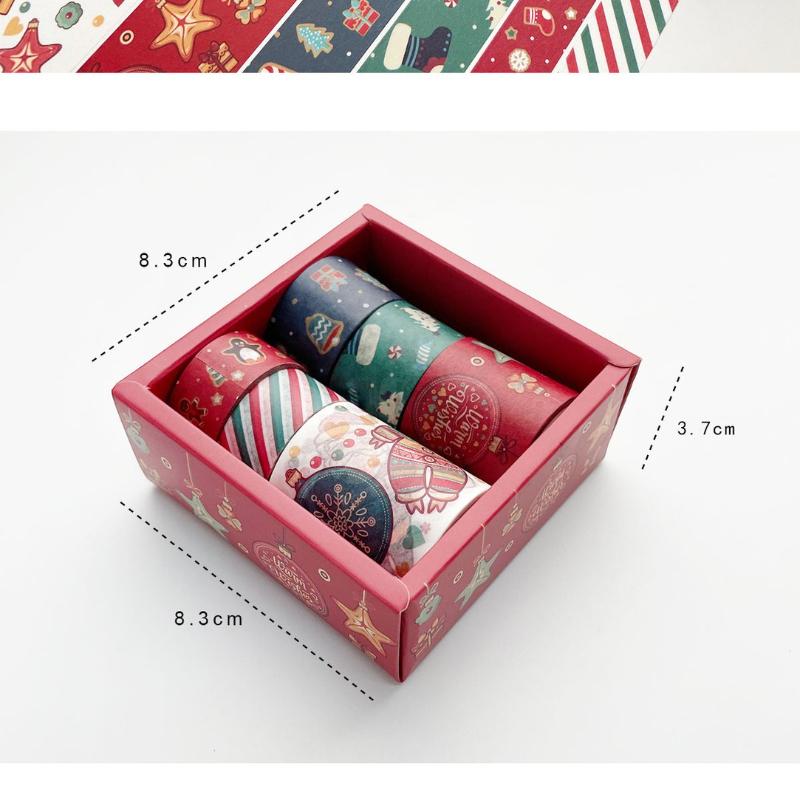 6Rolls/ Box Christmas Washi Tape Xmas Gift Decorative 3 Meters Merry Christmas Mask Washi Tape Set Scrapbook Sticker Label