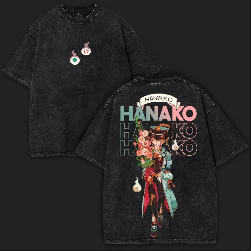 Футболка с принтом Ханако-кун Аниме Туалетный Ханако-кун Одежда Мужская Женская Футболки с эффектом ретро-стирки Оверсайз футболка Футболка Харадзюку