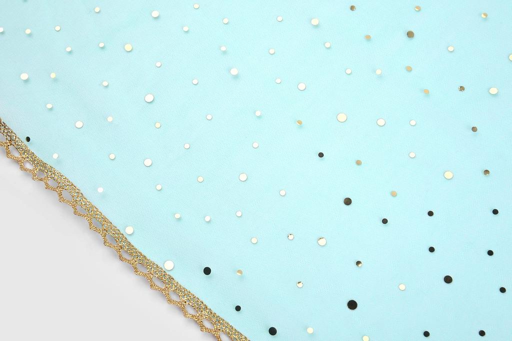 Он украшен блестками и пайетками и сверкает при каждом движении.