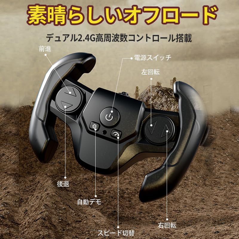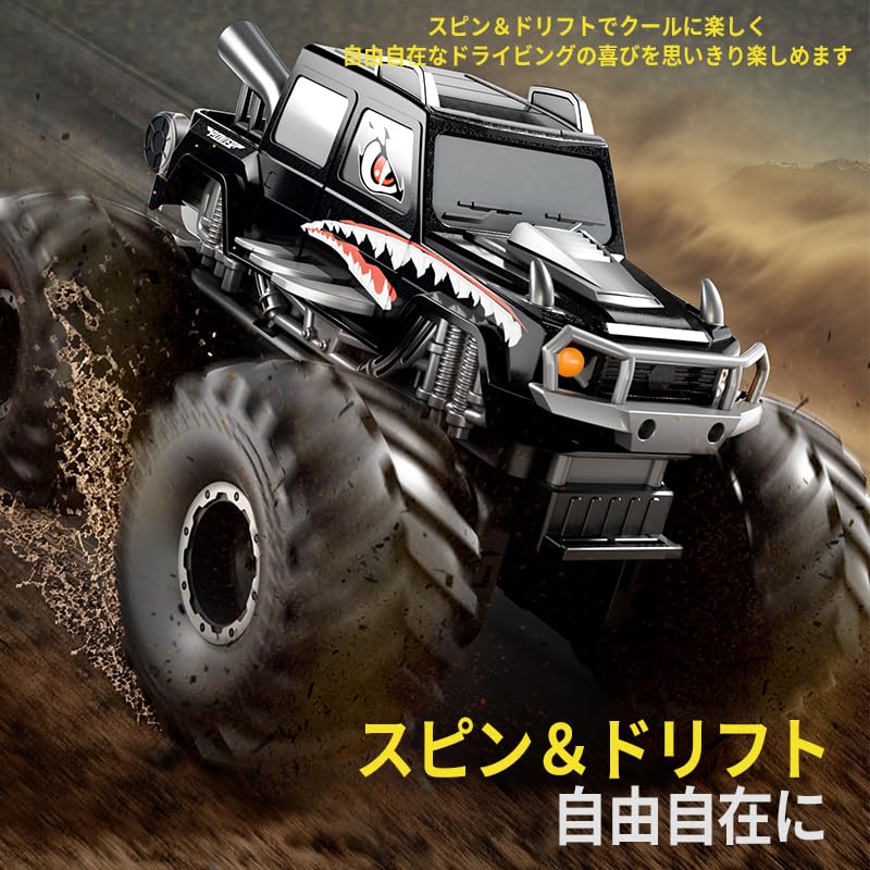 ★【Большие, износостойкие шины и регулируемая скорость】Оснащенный прочными, большими, износостойкими колесами, он мощно преодолевает различные типы местности, включая траву, гравий, грязь и лужи. Вы можете свободно переключаться между режимами высокой и низкой скорости.. Этой машинкой-монстром на радиоуправлении можно наслаждаться как в помещении, так и на улице, и это популярный подарок для торжеств, как игрушечная машинка, с которой можно играть долгие годы.