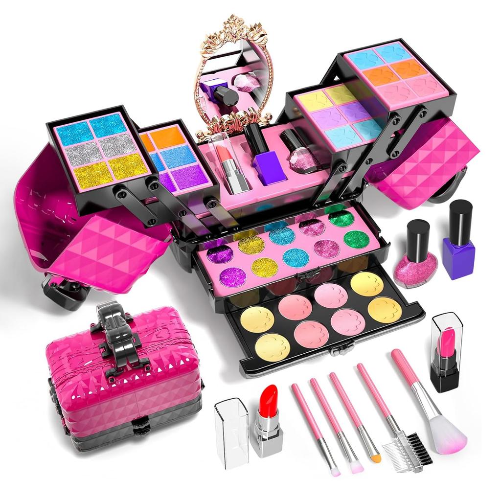 Набор для макияжа для девочек, игрушечный детский косметический набор, подарок для девочек 4, 5, 6, 7, 8, 9, 10, 11, 12 и 13 лет. Идеальный подарок на день рождения или Рождество для девочек младшего школьного возраста. Смываемый, нетоксичный детский набор для макияжа с коробкой для хранения, доступен в черном и розовом цветах.
