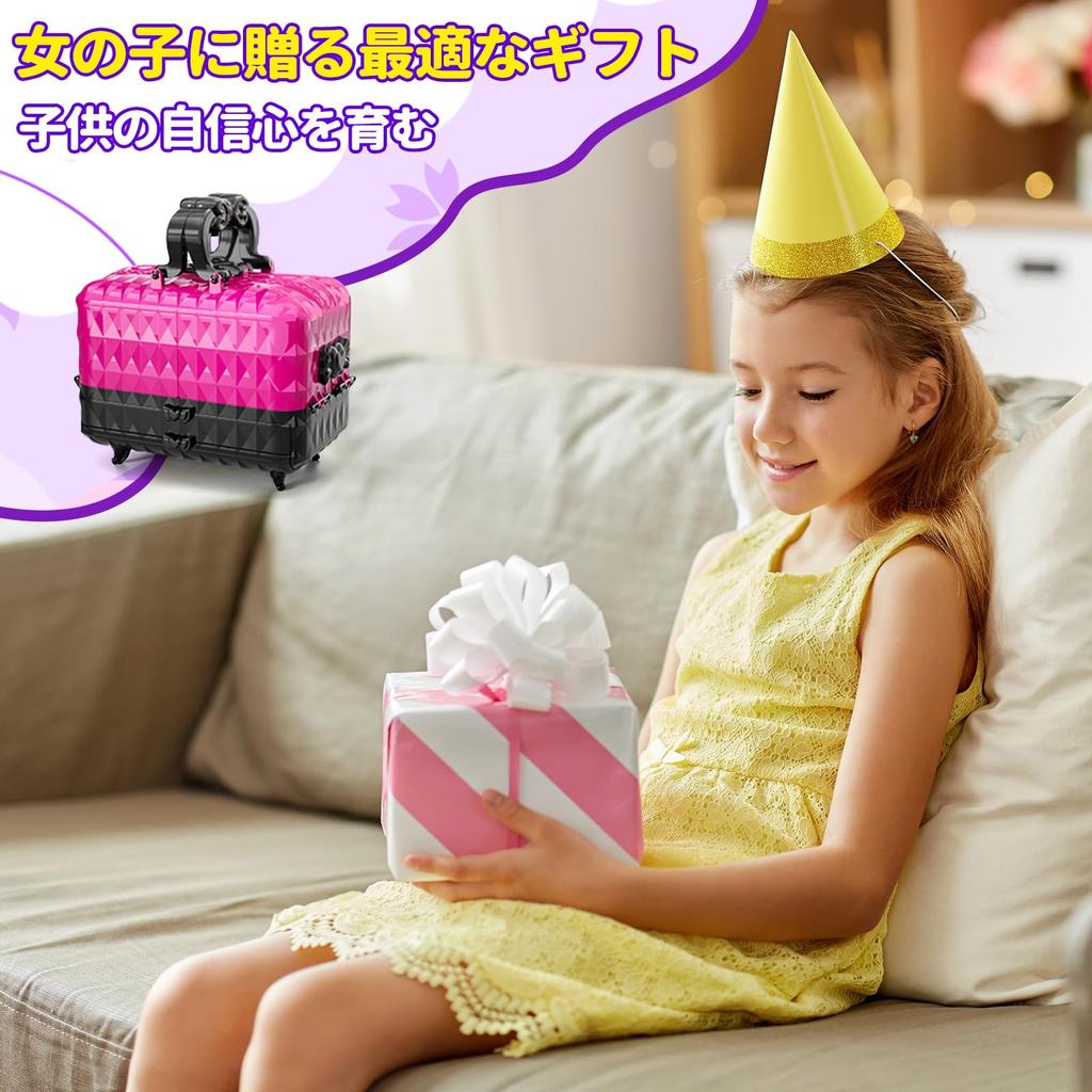 [Легко хранящийся набор для макияжа] (с зеркалом)] После открытия набора для макияжа вам просто нужно прикрепить милое зеркальце. Это позволяет вашему ребенку наносить макияж, глядя в зеркало.. Кейс для макияжа имеет размеры 37*21*17,5 см в открытом виде и 17,2*10,1*17,2 см в закрытом виде. Он очень легкий и удобный для хранения. Дети могут брать косметичку на дни рождения, костюмированные вечеринки и в путешествия и подправлять макияж, когда захотят.