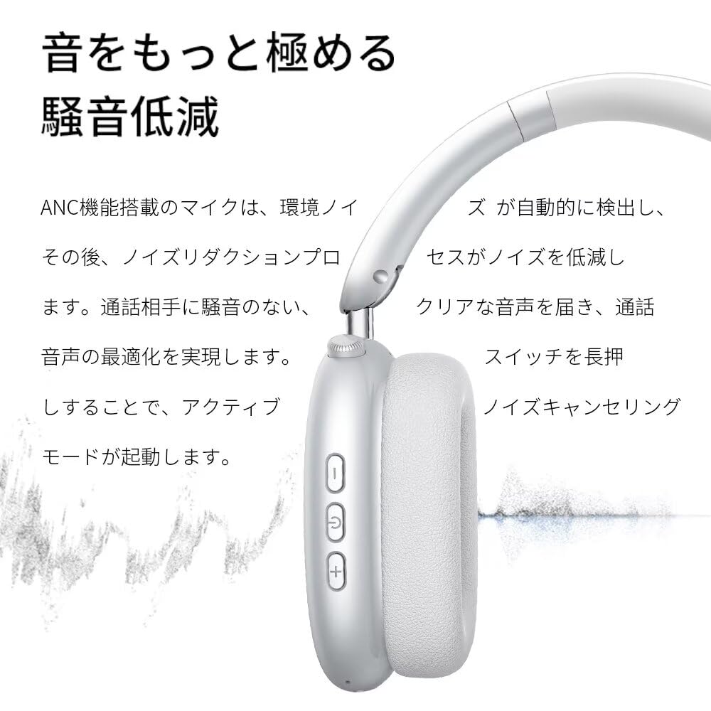 Bluetooth Headphones, ANC Noise Cancelling, Wireless Gaming Headset, Closed-Back, Over-Ear Headphones, HiFi Sound Quality, Up to 30 Hours of Playtime, Wired & Wireless Compatible, with Mic, Foldable, Compatible with iPhone/iPad/Android/PC (Silver)