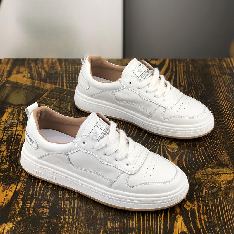 Туфли из натуральной кожи на плоской подошве белого цвета для женщин, новые студенческие универсальные повседневные спортивные туфли с мягкой подошвой для скейтбординга Tide